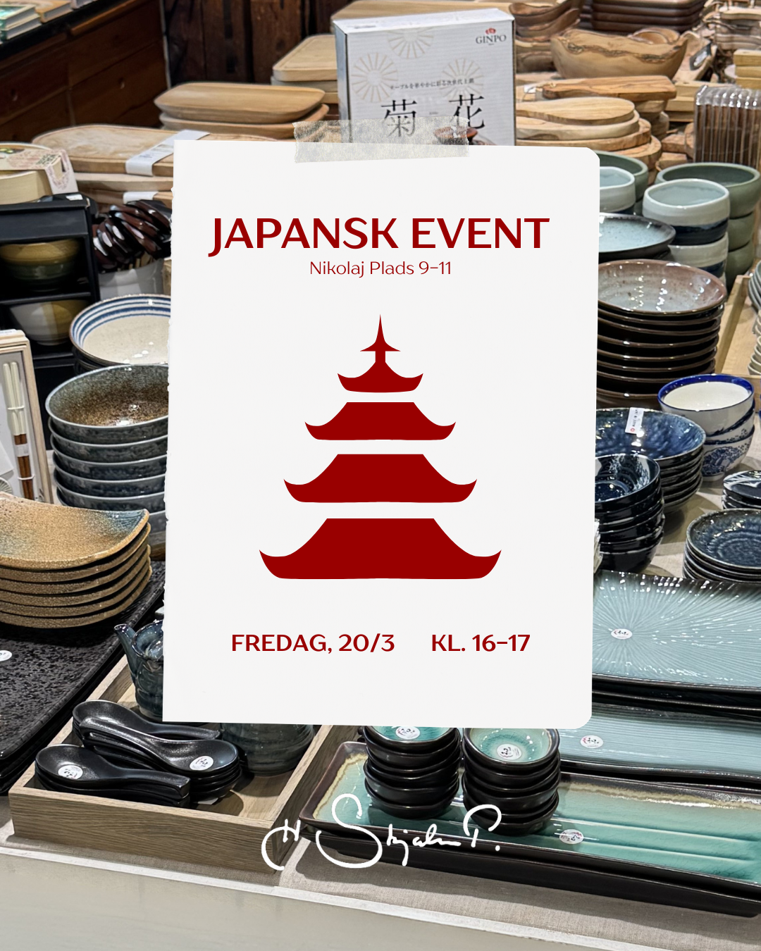 Fredag d. 20. marts kl. 16–17 inviterer vi til et hyggeligt event med japansk tema i butikken. Her får vi besøg af dygtige kokke, som laver lækker japansk mad, du kan smage undervejs. Samtidig har vi samlet alt, hvad du skal bruge til at lave japansk og asiatisk mad derhjemme.