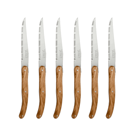 Laguiole Country | Steakknive inkl. knivblok, oliventræ, 6 stk.