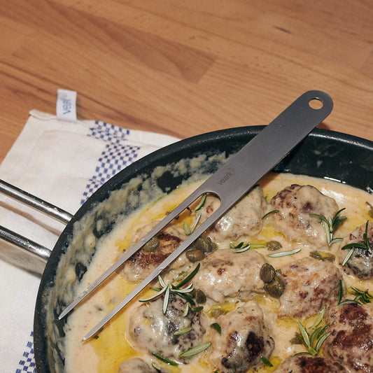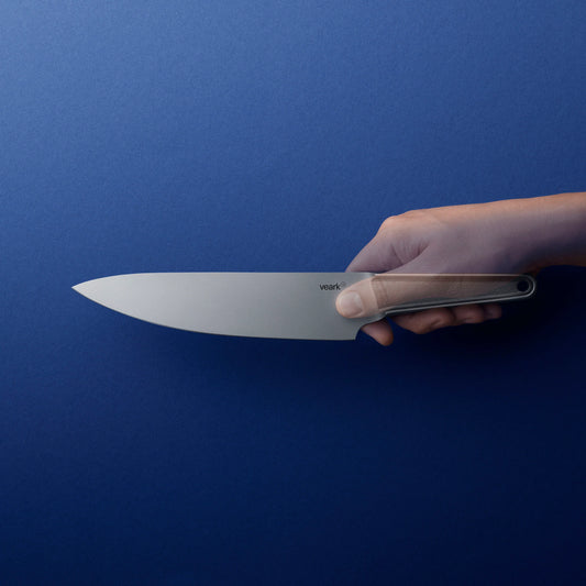 Med fokus på kniven som det essentielle redskab i køkkenet har Veark udviklet det innovative "åbne" håndtag ved at observere, hvordan professionelle kokke håndterer deres knive: et skruenøgle-inspireret design, der opfordrer til at placere tommelfingeren på bladet og gribe kniven ved balancepunktet – hvilket giver optimal stabilitet og et sikkert greb.