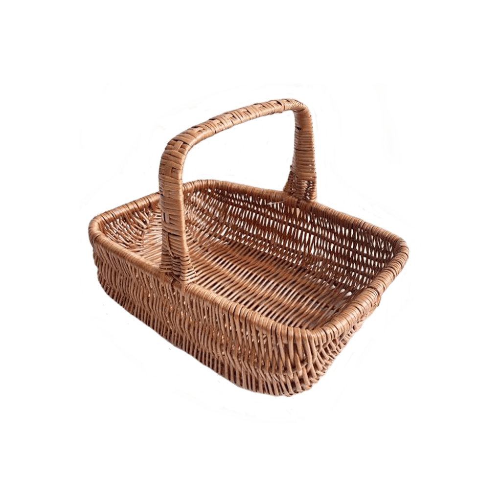 Fin lav hollænderkurv / svampekurv i pileflet med hank fra danske Aafod. Perfekt til svampejagt. Kurven er flettet af rødpil.