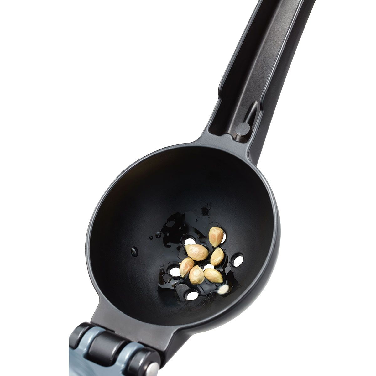 Lemon DUO 2-i-1 saftpresser med omvendelsesprincip i trykstøbt zink med ergonomisk greb fra GEFU er en multifunktionel citruspresser til både store og mindre citrusfrugter. Med den praktiske, foldbare, udskiftelige indsats sikrer den at få mest mulig saft. Læg blot den halverede frugt i pressen med den skårne side nedad, og begynd at presse. Saften presses skånsomt og uden kontakt med den bitre skal og den fine perforering i bunden holder frø og pulp tilbage.
