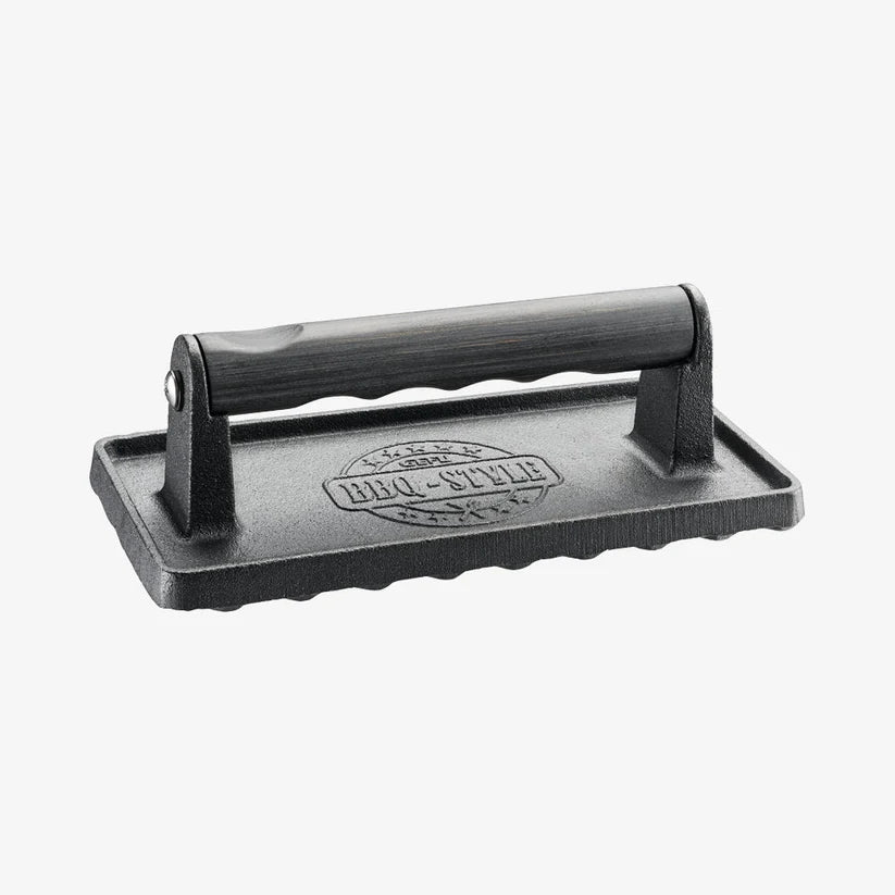Det robuste støbejern sikrer en jævn varmefordeling og langvarig holdbarhed. Det ergonomiske håndtag i pakkatræ giver et sikkert og komfortabelt greb, så du kan presse dit kød med lethed. Denne kødpresser er ikke kun funktionel, men også et stilfuldt redskab til dit grilludstyr.