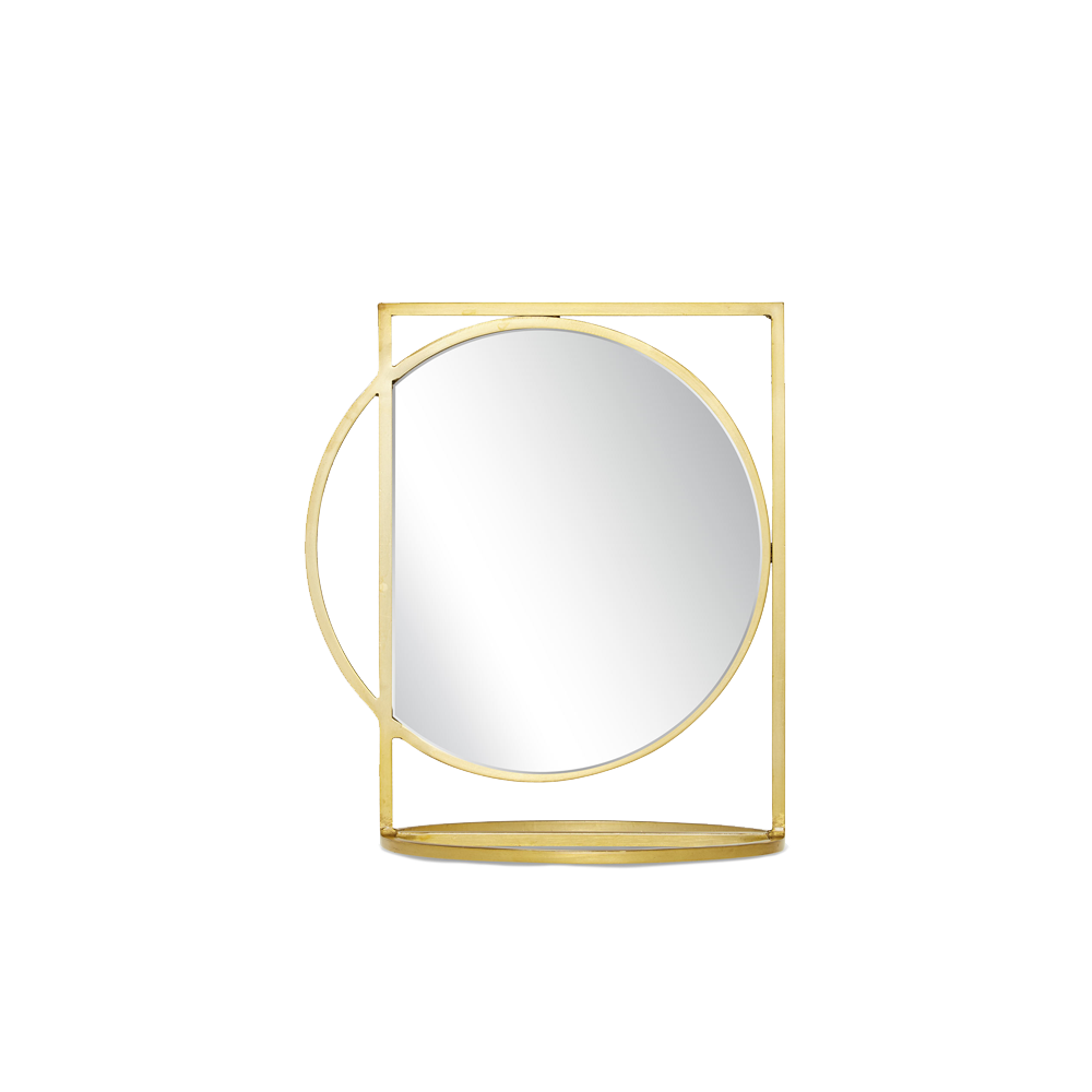 Overlap er et smukt bordspejl i geometriske former fra H. Skjalm P. Spejlet er fremstillet i messing og fremstår solidt og dekorativt på sminkebordet, vindueskarmen eller reolen.