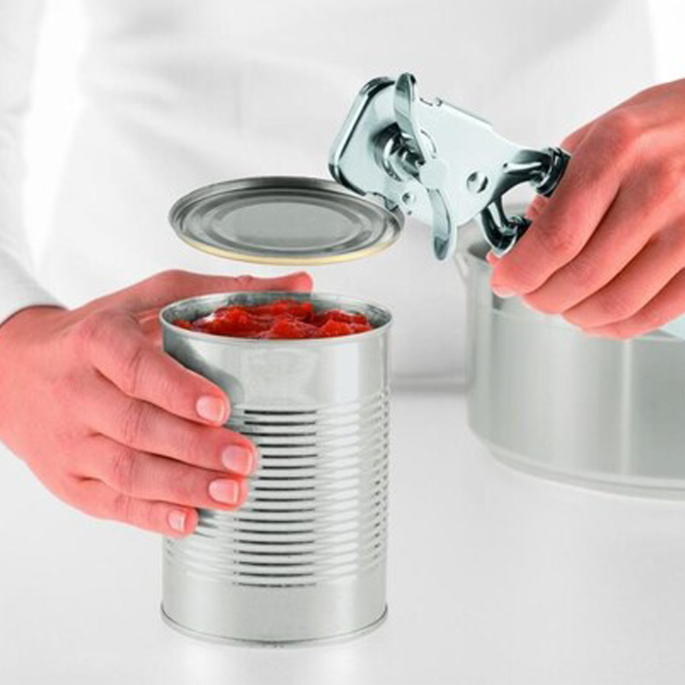 ustfrit stål. Dåseåbneren er af højeste kvalitet. Det ergonomiske håndtag sikrer dig et godt greb og åbner nemt uden at efterlade skarpe kanter på dåsen, og uden at komme i kontakt med dåsens indhold. Uundværlig i husholdningen - også god til svage hænder.