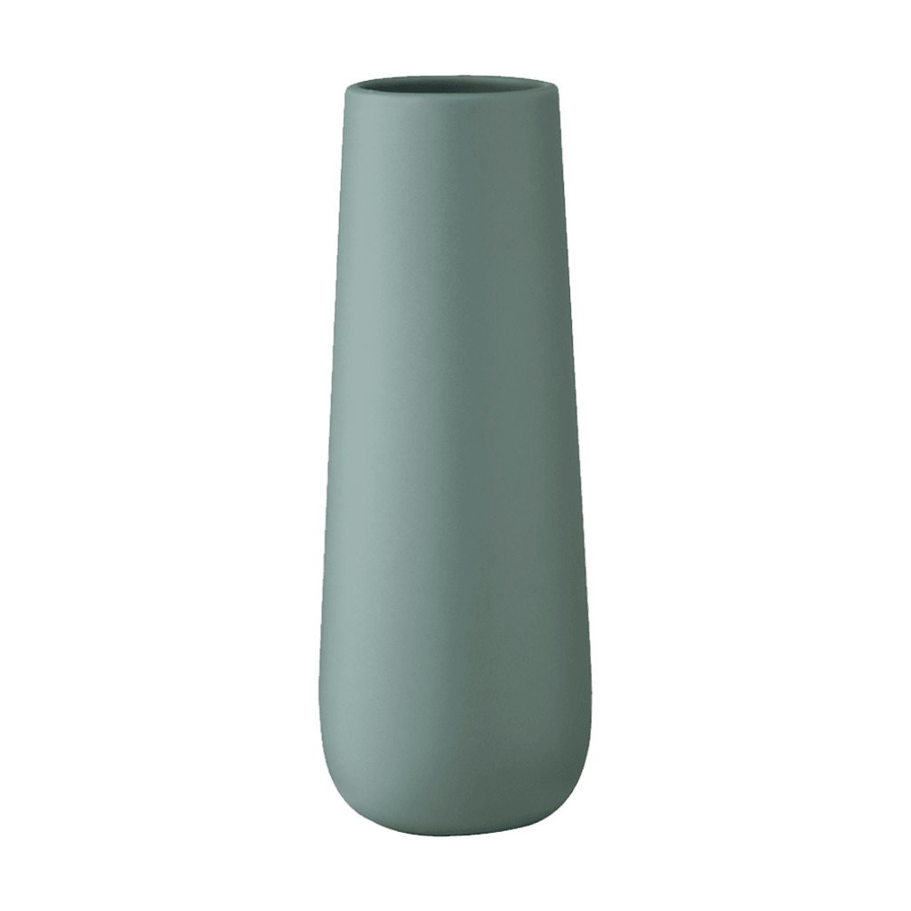 Emely vasen fra H. Skjalm P. fremstår i mat grønt stentøj med reaktiv glasur er en enkel og smuk vase perfekt til grene eller langstilkede buketter. Hver enkel vase er unik, da de er håndglaseret, og der kan derfor forekomme små variationer i glasur, mønster og farve.