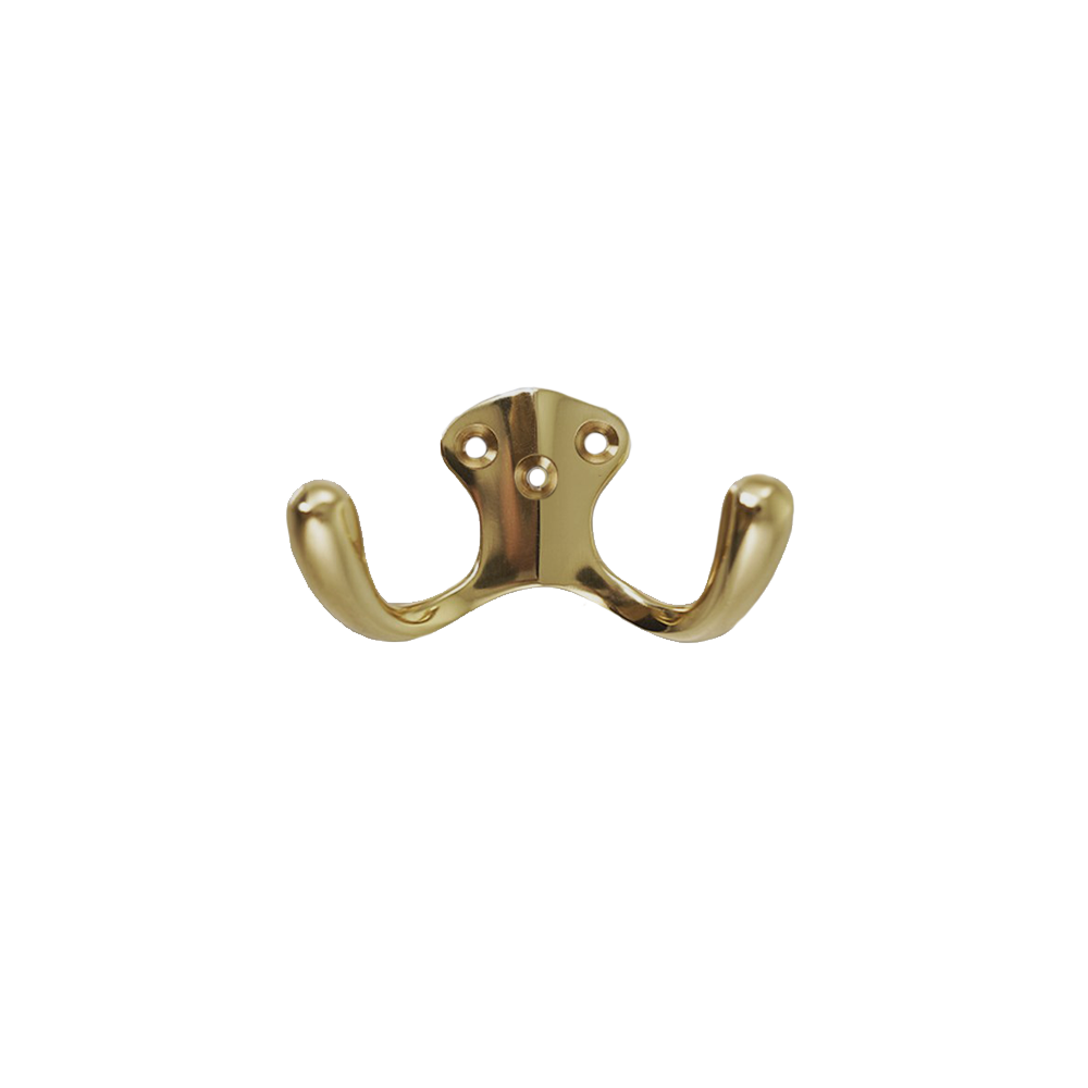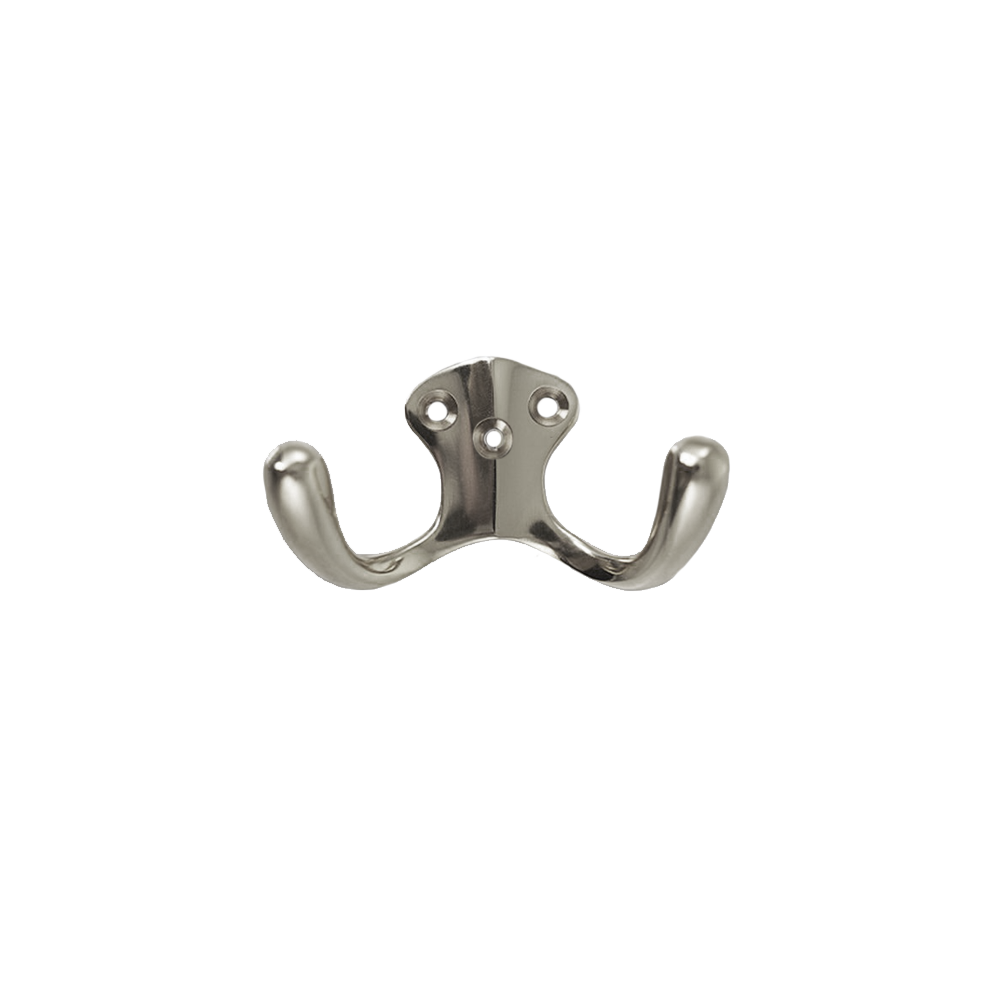 Praktisk dobbelt frakkekrog fra Kyner & Co. som leveres med skruer. Vælg imellem tre forskellige størrelser. Kan bruges i private hjem i entre eller i køkken, eller under baren i restaurationsmiljøer. Vælg imellem messing eller stål.