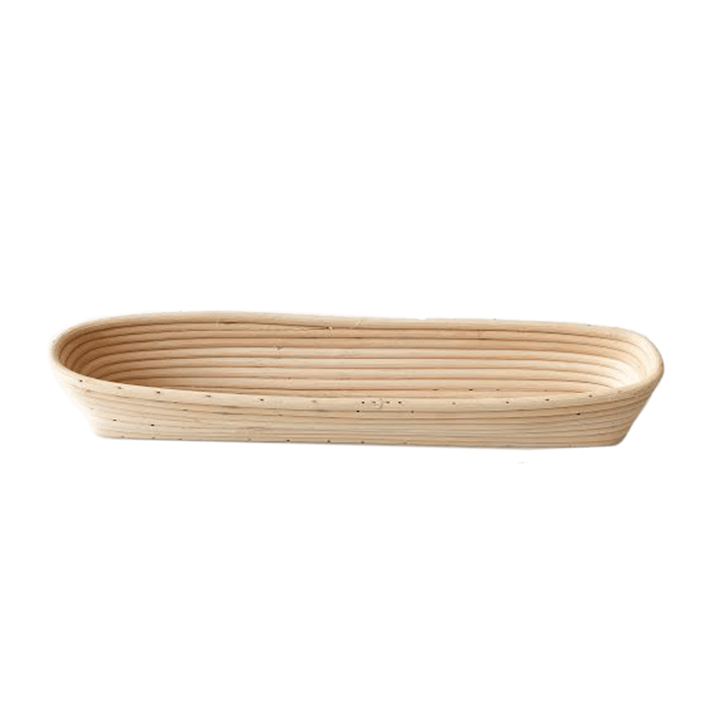 Smal og aflang hævekurv til flûtes fra danske Aafod. Hævekurven sørger for, at brødet hæver opad og efterlader et flot mønster i formen. Drys formen med masser af mel inden brug, så dejen ikke hænger fast. Gør ikke kurven våd, men rens den i stedet af med en børste eller tør klud. Du kan også bruge kurven som brødkurv ved måltidet.