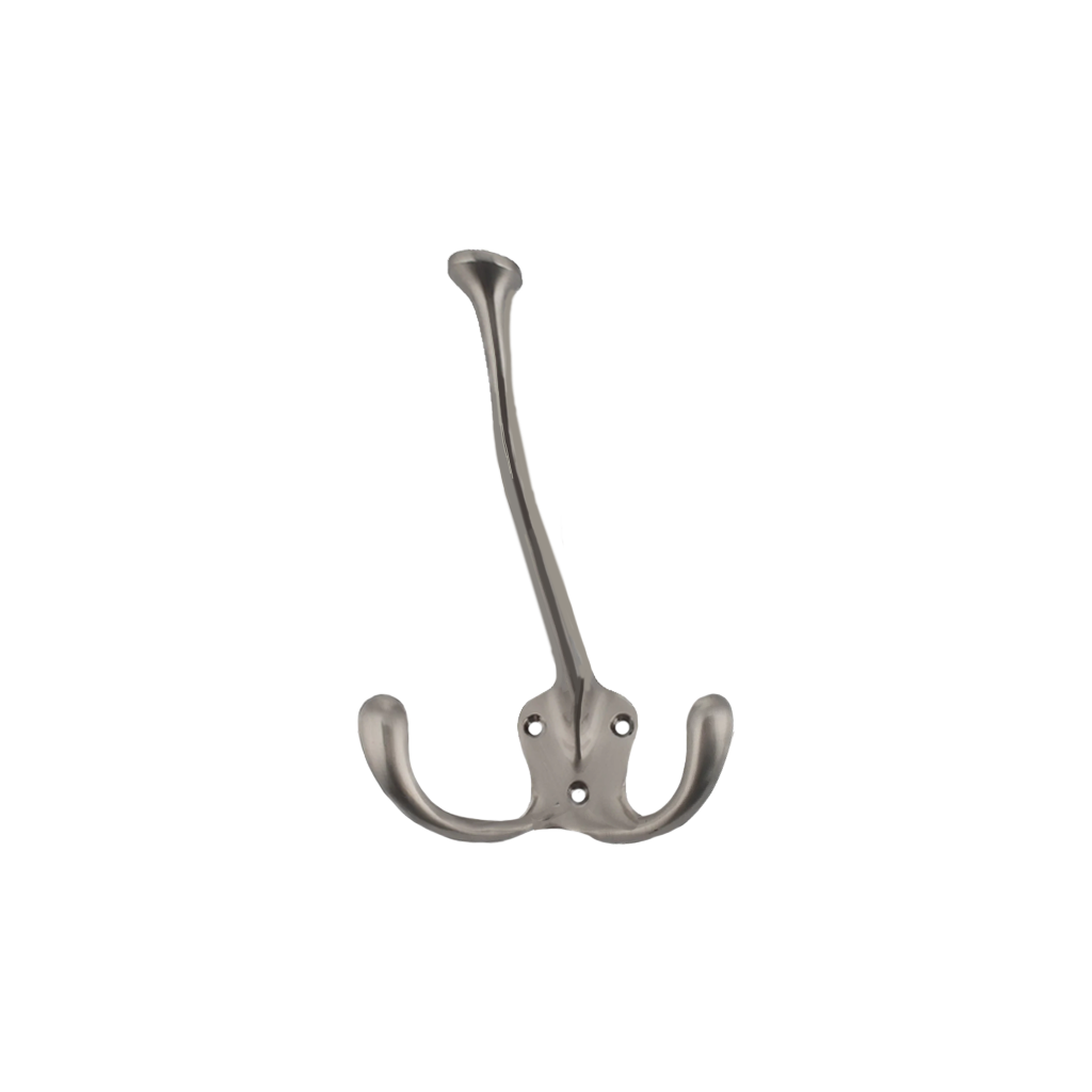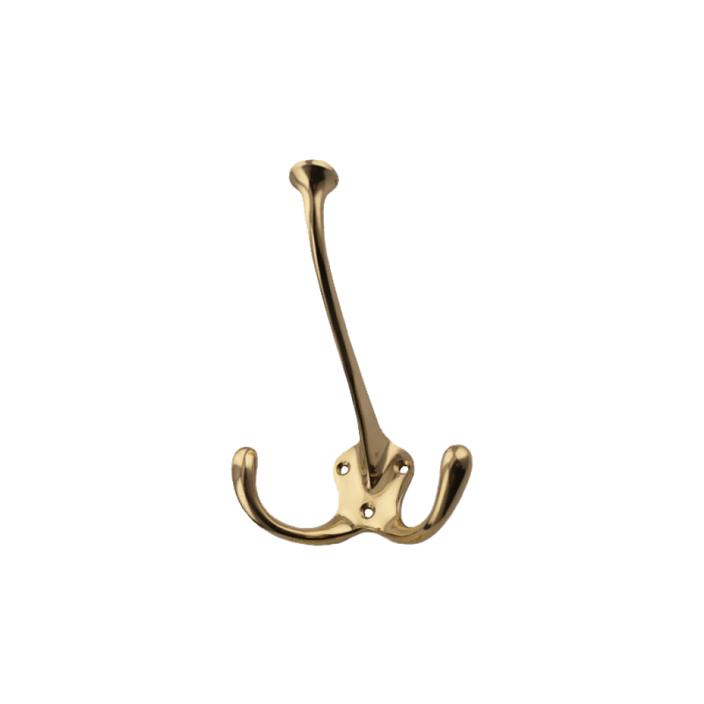 Praktisk hattekrog i lakeret messing med tre knager i én fra Kyner & Co. Leveres med skruer. Vælg mellem to forskellige materialer.
