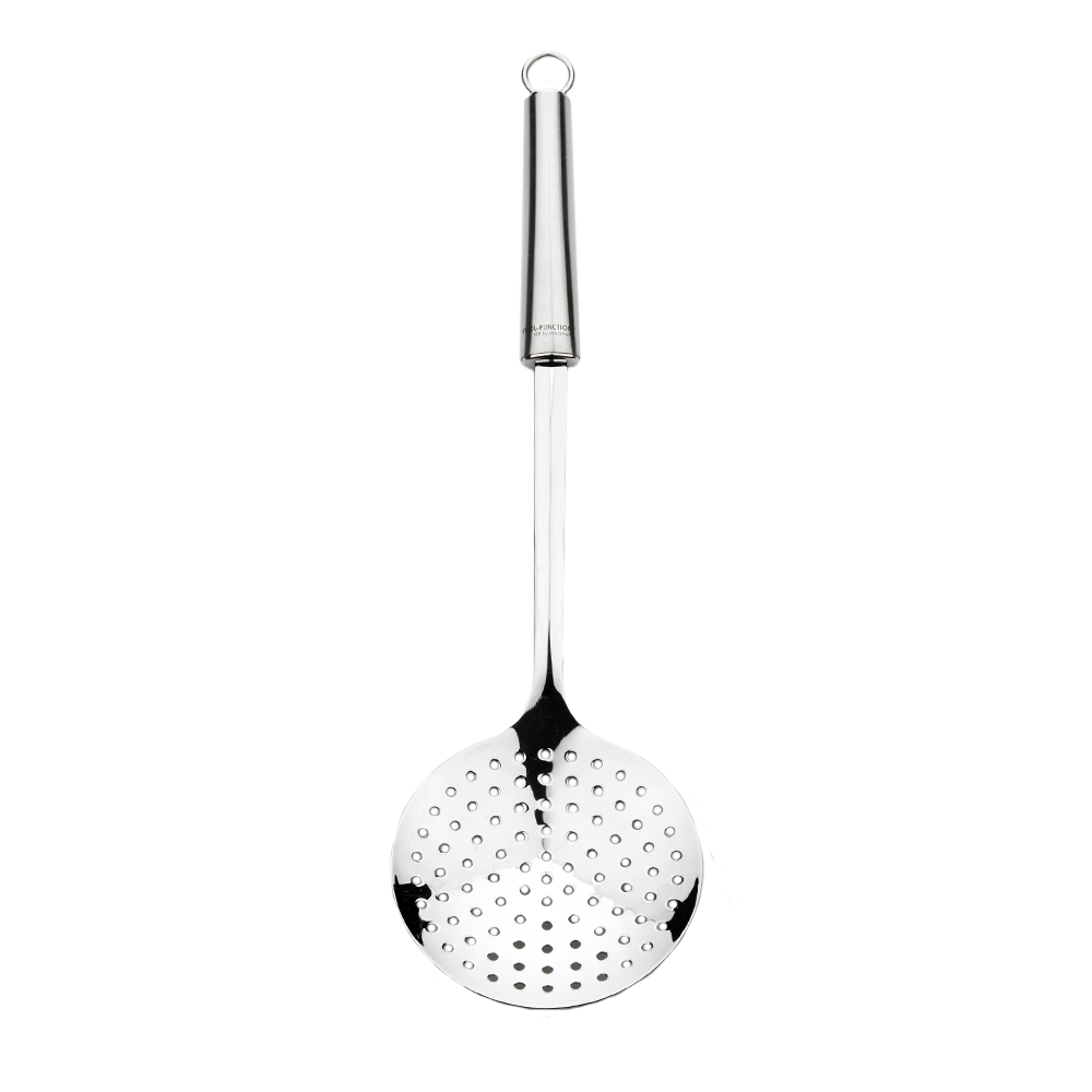 Hulske øse fra Ergo-serien fra Steel Function og Scandinavia. Ideel til at fordele væske fra gyden med kød, grøntsagertager, pasta mm. Skeen er også praktisk, da den kan hænges op på en krog.