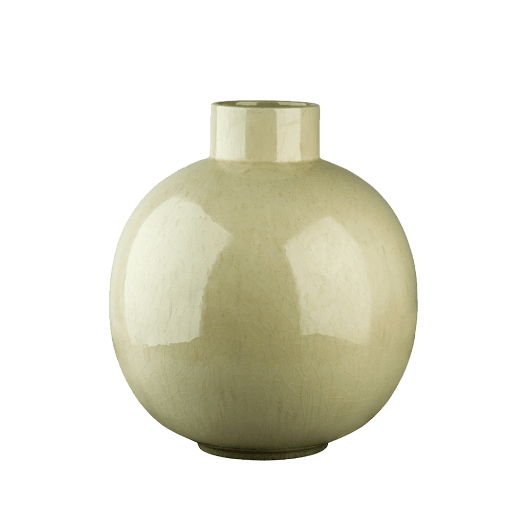 Ingeborg vasen fra H. Skjalm P. er en kuglerund og meget smuk vase i en blank glasur. Udsmyk den med et bundt af grene eller lad den stå for sig selv som et dekorativt objekt på reolen eller i vindueskarmen. Hver enkel vase er unik, og da de er håndglaseret, kan der forekomme små variationer i glasur, mønster og farve.