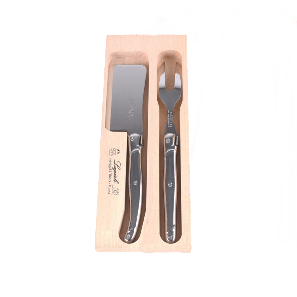 Klassisk ostesæt fra franske Laguiole i hærdet rustfrit stål og spejlslebet finish med med den ikoniske bi i rustfrit stål som støttepude til pegefingeren, når du skærer. Sættet består af to dele - en ostekniv til blød ost og en ostegaffel.