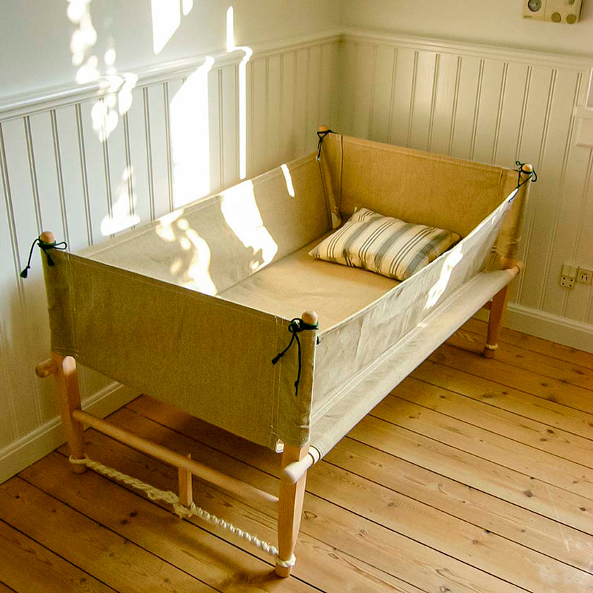 Siderne på sengen kan foldes ned, og det giver sengen flere funktioner; den perfekte hundekurv til det firbenede familiemedlem eller en dejlig lille sofa til børneværelset.