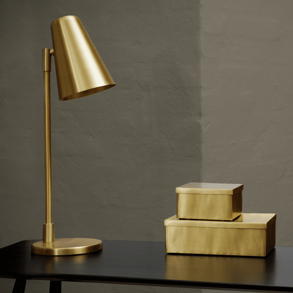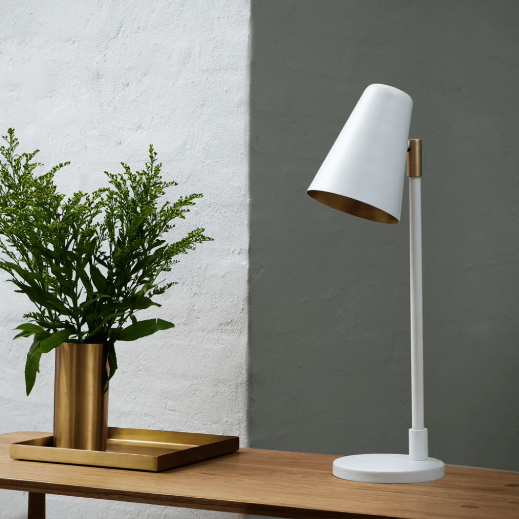 Ramo bordlampen fra H. Skjalm P. er en smuk og enkel bordlampe, som giver et varmt og behageligt lys. Det klassiske design gør den perfekt som lyskilde på skrivebordet, som natlampe på sengebordet eller som læselys ved sofahjørnet. Vælg i mellem grå, hvid, sort og mat messing. Brug lyskilde E27 (medfølger ikke)