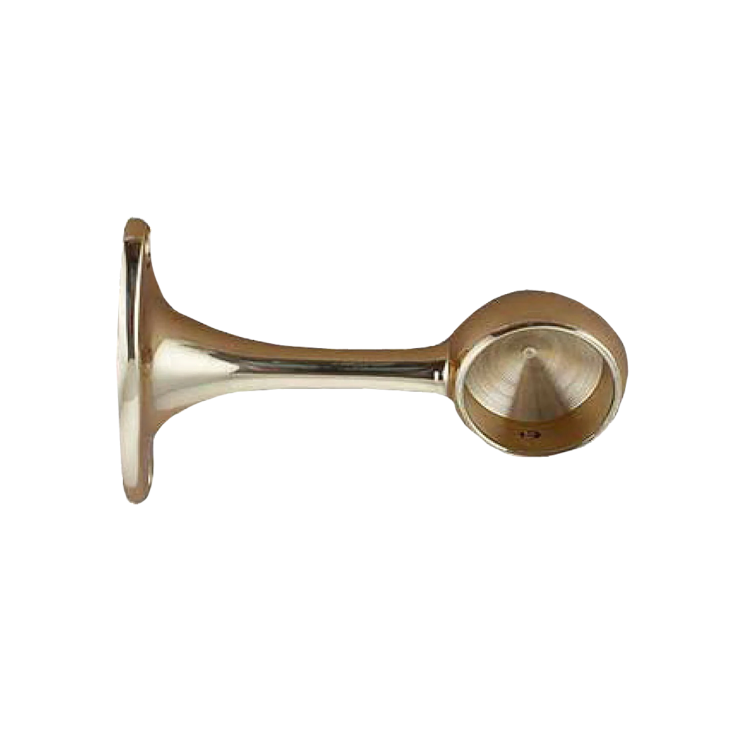 Messing rørholder til ophæng af gryder og redskaber i køkkenet. Passer både til højre og venstre side. Vælg imellem højre eller venstre side. Passer til rør med 2.5 cm.