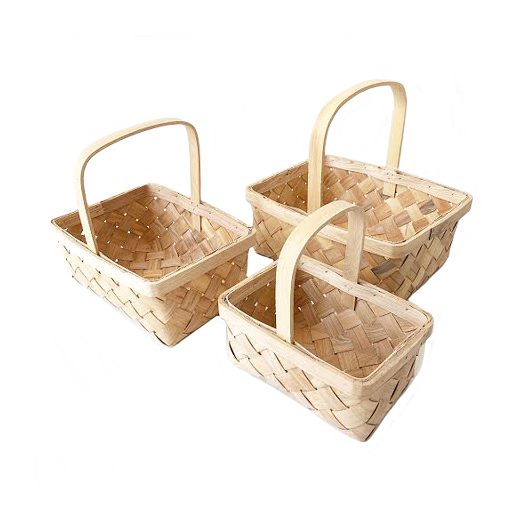 Klassisk spån fletkurv fra danske Aafod. Den firkantede flettede kurv har fast håndtag, og kan let bruges til opbevaring, picnic eller småindkøb. Fås i tre forskellige størrelser.