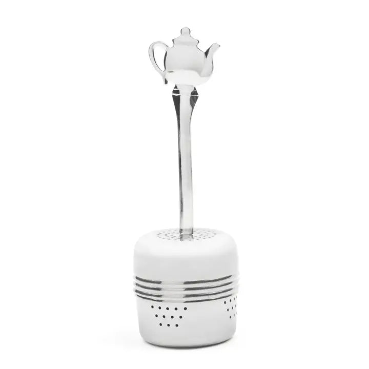 Håndtaget gør det nemt at fjerne det fra varmt vand, har et dekorativt tekandemotiv ovenpå Perfekt til alle størrelser af krus og små tekande Du behøver ikke gå på kompromis med kvaliteten for nemheds skyld! Udskift dine gamle teposer, og sørg for den største smag, aroma og kvalitet ved let at brygge frisk, løs bladte med fuld smag. Vores teinfusere giver dig mulighed for nemt at brygge din yndlings løse bladte uden at bekymre dig om, at indholdet falder ud og skaber rod. Denne alsidige infuser er konstrueret af slidstærkt 18/8 rustfrit stål og giver langvarig, rustfri brug. Velegnet til alle størrelser af krus og små tekande og har et 2-1/2-tommer håndtag til problemfri fjernelse fra varmt vand. Læg blot en lille mængde af din foretrukne løse te i infusionsenheden, nedsænk i en kop varmt vand og fjern, når dine urter er helt gennemsyret.