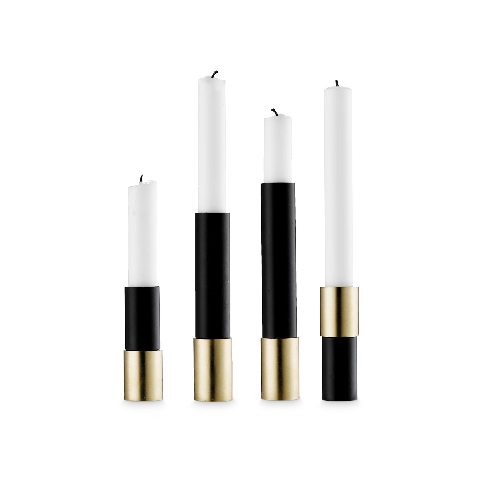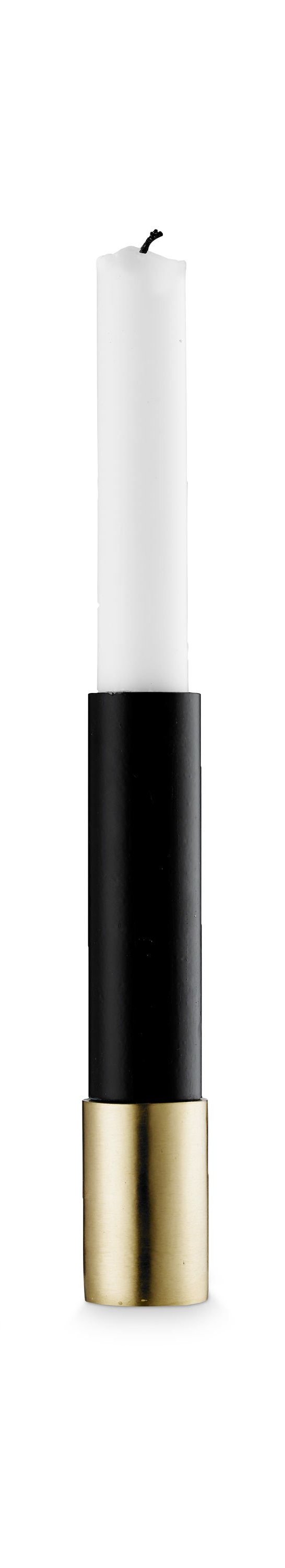 Upside down stagen er sort med manchet i messing. Stagen kan vendes, således at lyset kan sidde enten i den sorte ende eller i enden med messing.