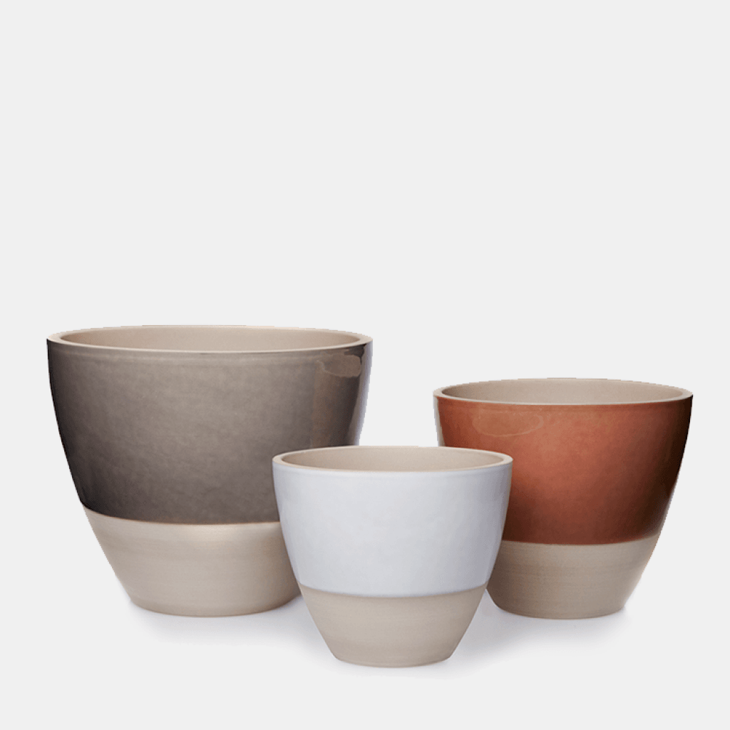 Urtepotteskjuleren Esther fra H. Skjalm P. med sin fine runde form er lavet i stentøj, og har en rå overflade hvor halvdelen af ydersiden er smukt glaseret, og resten fremstår råt. Urtepotteskjuleren har fået silikone indvendig, som holder vand fra, at trænge igennem. Brug den både udendørs og indendørs.